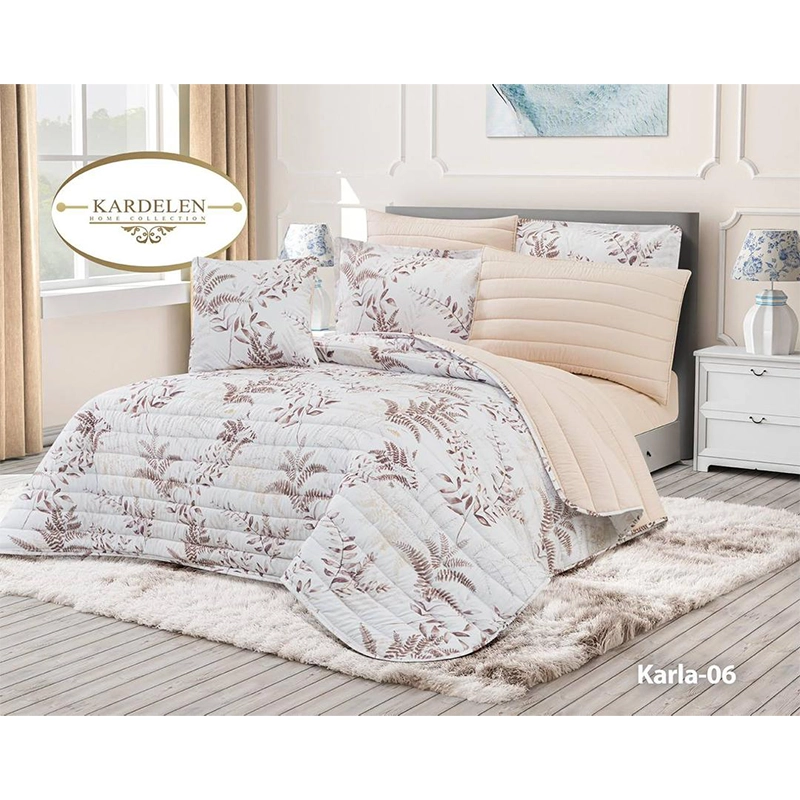 روتختی دو نفره ۷ تکه کارلا کاردلن با پارچه دو رو نخ پنبه، طراحی شیک و اقلام کامل، انتخابی کاربردی و باکیفیت برای ایجاد خوابی آرام و دکوراسیونی هماهنگ در اتاق خواب است.
